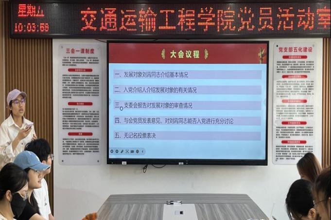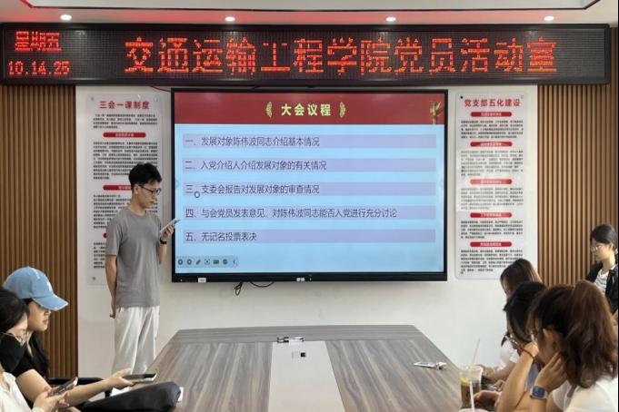 会议第一部分是预备党员接收大会。本次会议严格按照党组织接收预备党员的各项程序进行。会议伊始,陈灏同志简单介绍了会议流程和要求。主要分为五个议程:发展对象介绍基本情况、入党介绍人介绍发展对象的有关情况、支委会报告对发展对象的有关情况、与会党员发表意见并进行充分讨论、无记名投票表决。