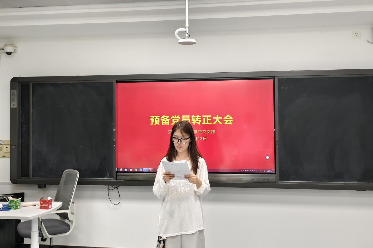 61319:00,交通运输第二学生党支部在世纪楼主楼305召开预备党员转正大会暨毕业生党员欢送会,会议由支部副书记姚若冰同志主持。本次会议兼具严肃与温情,既见证了新生力量的成长,也承载着对毕业生党员的美好祝愿。