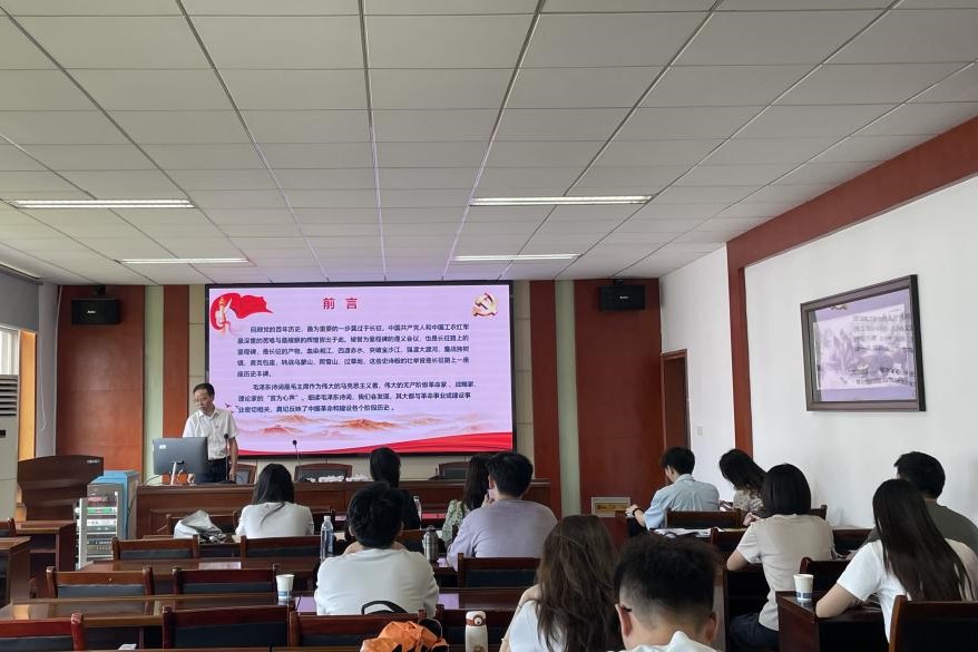会议伊始,支部全体成员起立,奏唱国歌。随后,计划财务处第一党支部书记李家才同志以“毛泽东诗词与长征精神”为主题作毕业座谈主题发言。李家才书记结合自身工作学习经历,分享了深刻体会和宝贵经验,为与会党员特别是即将毕业的党员同志提供了有益的借鉴和思考方向。