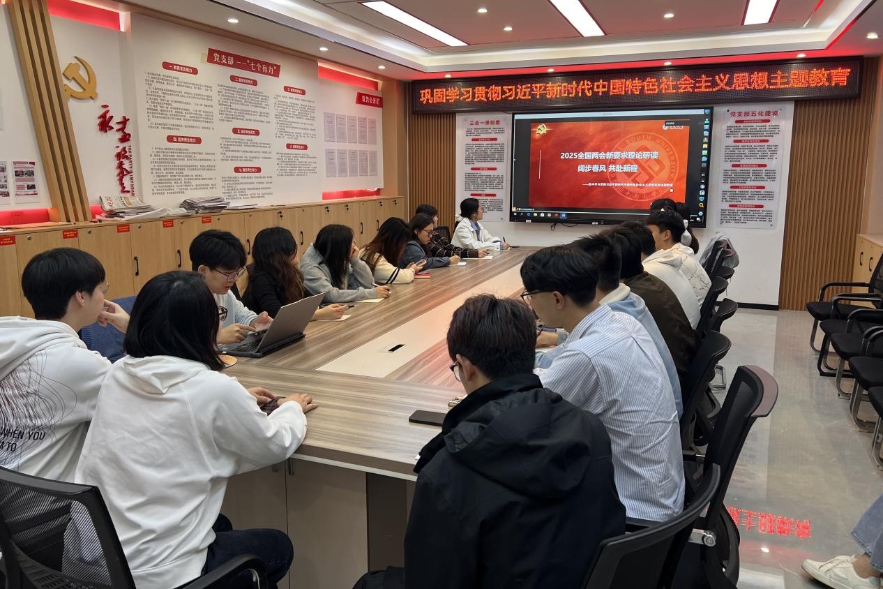 研究生会在第一综合实验楼党建活动室举行了两会精神学习活动及五四评优动员会。研究生会主席团成员和各部门代表参加了此次会议。与会人员围绕两会的概况、主要议题及精神导向等内容进行了学习。