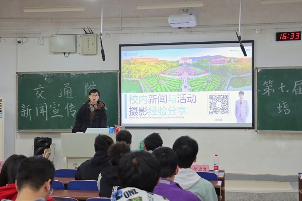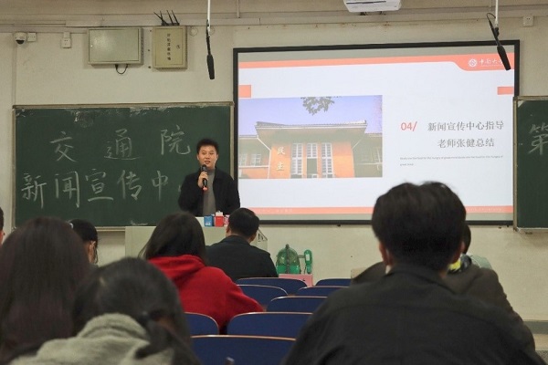 经过短暂的休息,下午4点30分,第七届新闻宣传中心宣传能力培训会准时开始。会议邀请了机电院研究生辅导员徐宏岩和第六届新闻宣传中心主任彭薇仪为大家作新闻摄影和新媒体宣传培训,此外,十大博彩平台