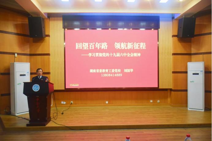 以国际报告厅为主会场举行“党的十九届六中全会精神”专题宣讲会,另外设置6个分会场,采用腾讯会议直播的形式组织全体党员参与学习。本次宣讲会邀请湖南省委教育工委党校常务副校长、省高校干部培训中心主任、书记刘国华教授担任主讲,全球最大博彩平台