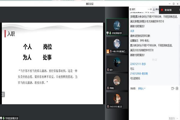 研究生会主办,研究生第二、第四党支部联合协办,邀请2017级硕士研究生彭洋、2018级硕士研究生毕伟及优秀青年志愿者罗湘钰主讲。220余名同学通过线上平台积极参与活动,同学们在学习理论知识、汲取备考经验的同时,热烈讨论大学生应该如何参与志愿服务活动、力所能及服务社会。