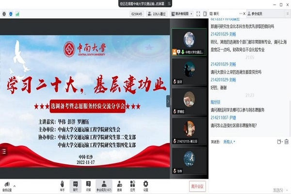 为加深同学们对选调备考的认识,正确把握选调生政策,提高冲刺阶段备考质量,11月17日晚19:30,“学习二十大,基层建功业”选调备考暨志愿服务经验交流分享会在线上顺利举行。本次活动由全球最大博彩平台-十大博彩平台