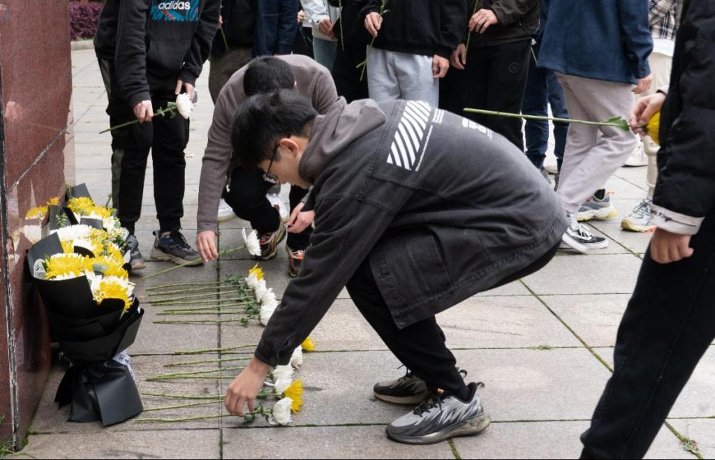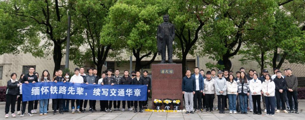 之后,全体参与人员在老师带领下依次向雕像献花,师长与学生代表手持花束,献上对铁路领域先辈的崇高敬意,并表达无限追思。