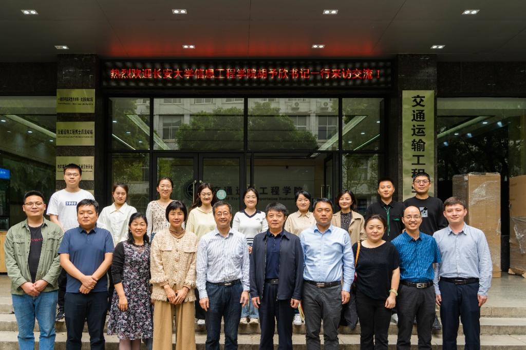 前往长安大学进行调研回访。交流会结束后,参会人员于交通楼一楼大厅外合影留念。