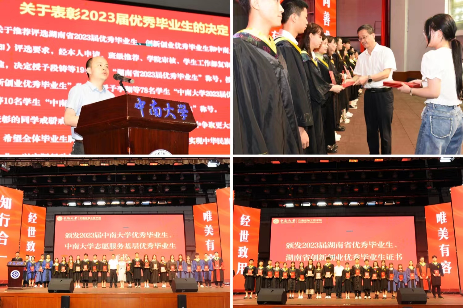 2023届志愿服务基层优秀毕业生名单。院党委书记贺志军为湖南省优秀毕业生、湖南省创新创业优秀毕业生颁发荣誉证书,副院长张英贵、韩锟为十大博彩平台