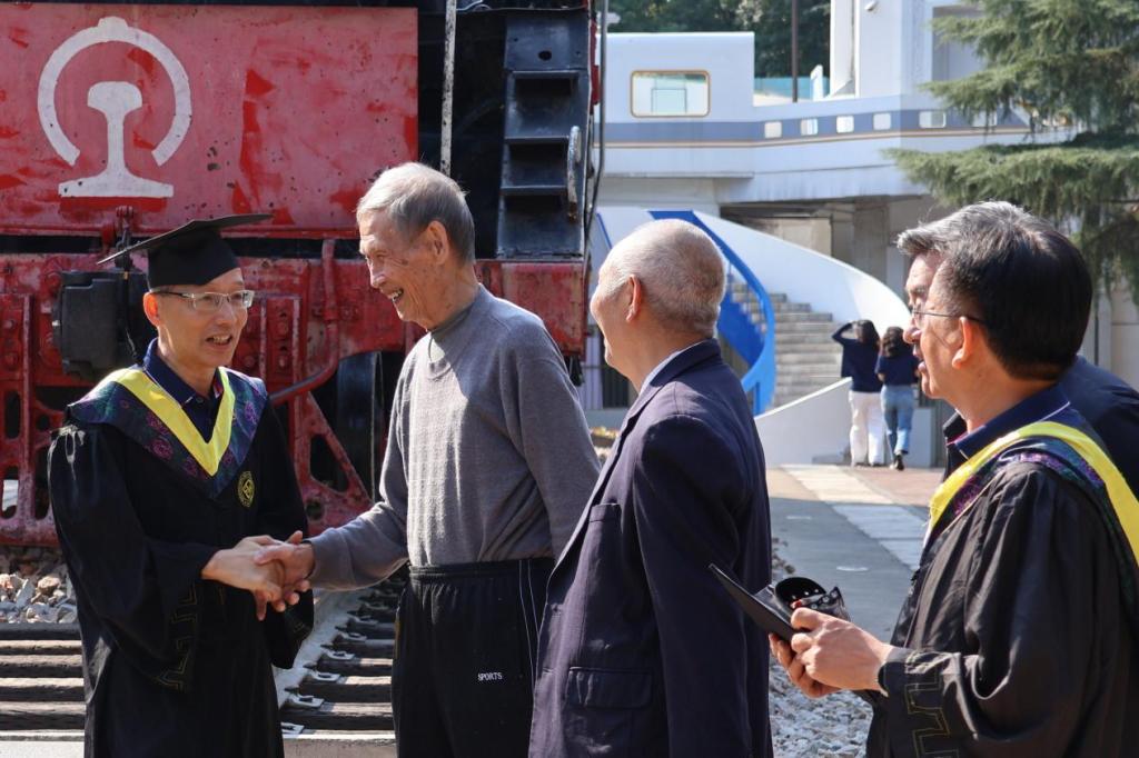 参观完毕后,校友们换上学士服,在铁路园与老师们合影留念。在这场特殊的“毕业礼”上,大家与昔日的师友重逢,回忆起学生时代的趣事,脸上洋溢着欢乐的笑容。随着合影留念的结束,本次校友回访活动也画上了圆满的句号。
