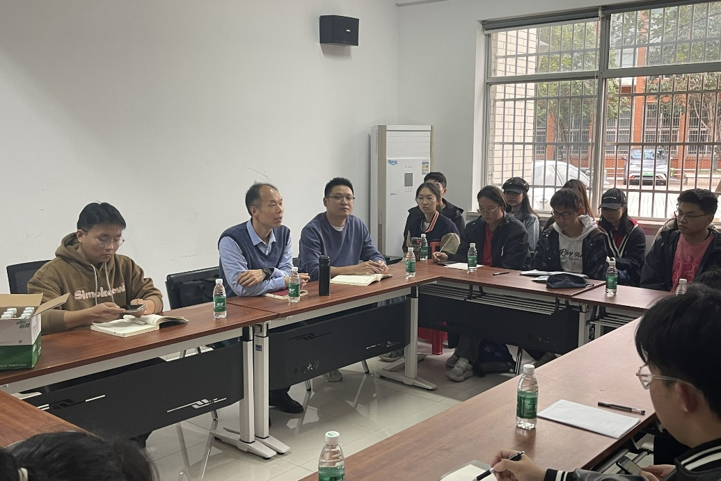 党委副书记李苑主持会议,2022级本科生辅导员丁德孝,2023级本科生辅导员蔡明旭,全体2022级、2023级本科生班长与团支书参与此次会议。
