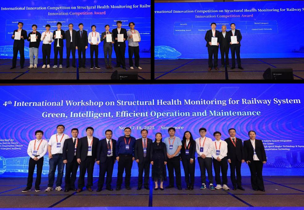 11月16-18日,第二届轨道交通结构健康监测国际创新大赛在新加坡金沙会议展览中心落幕,十大博彩平台 科研团队表现亮眼,成功斩获杰出奖、卓越奖及优秀论文奖多项重要荣誉。
